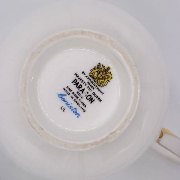 Matière : porcelaine d’Angleterre, Majesté the Queen Paragon, Boniston